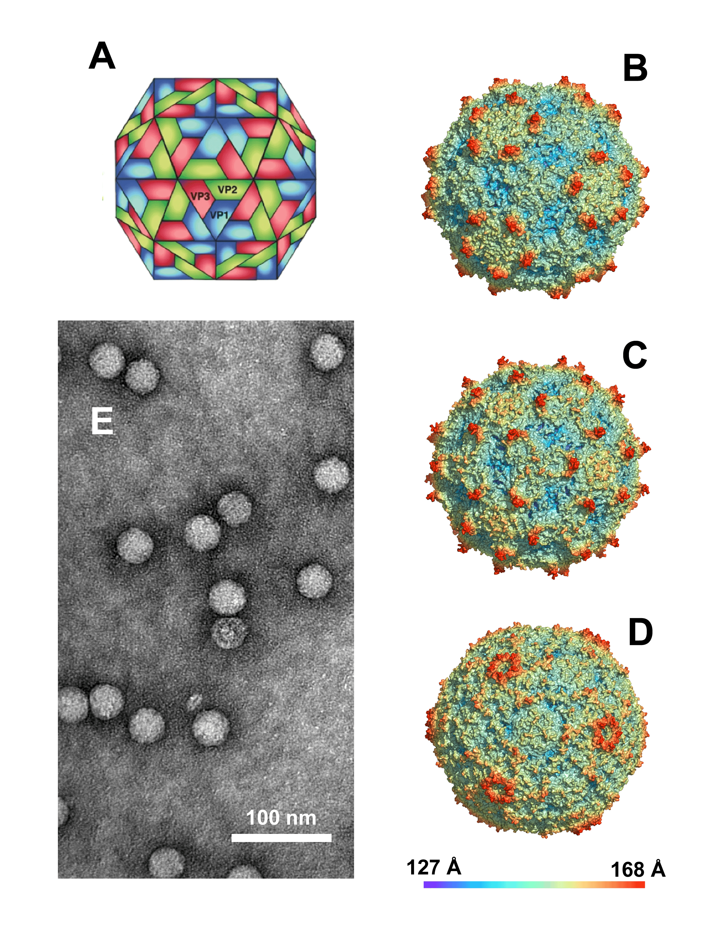 | Virion | Non-enveloped, 30 nm diameter virions |