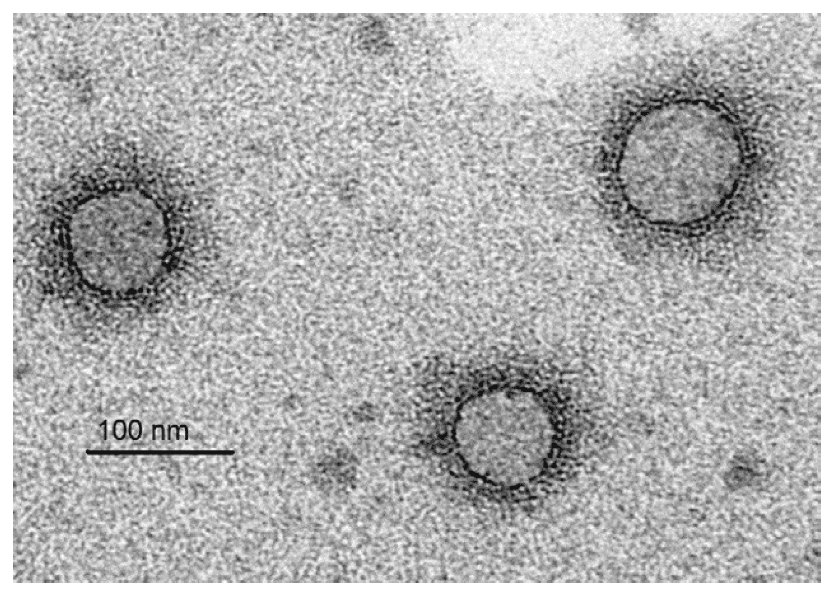VirionApproximately spherical and enveloped with a diameter of 80–150 nm