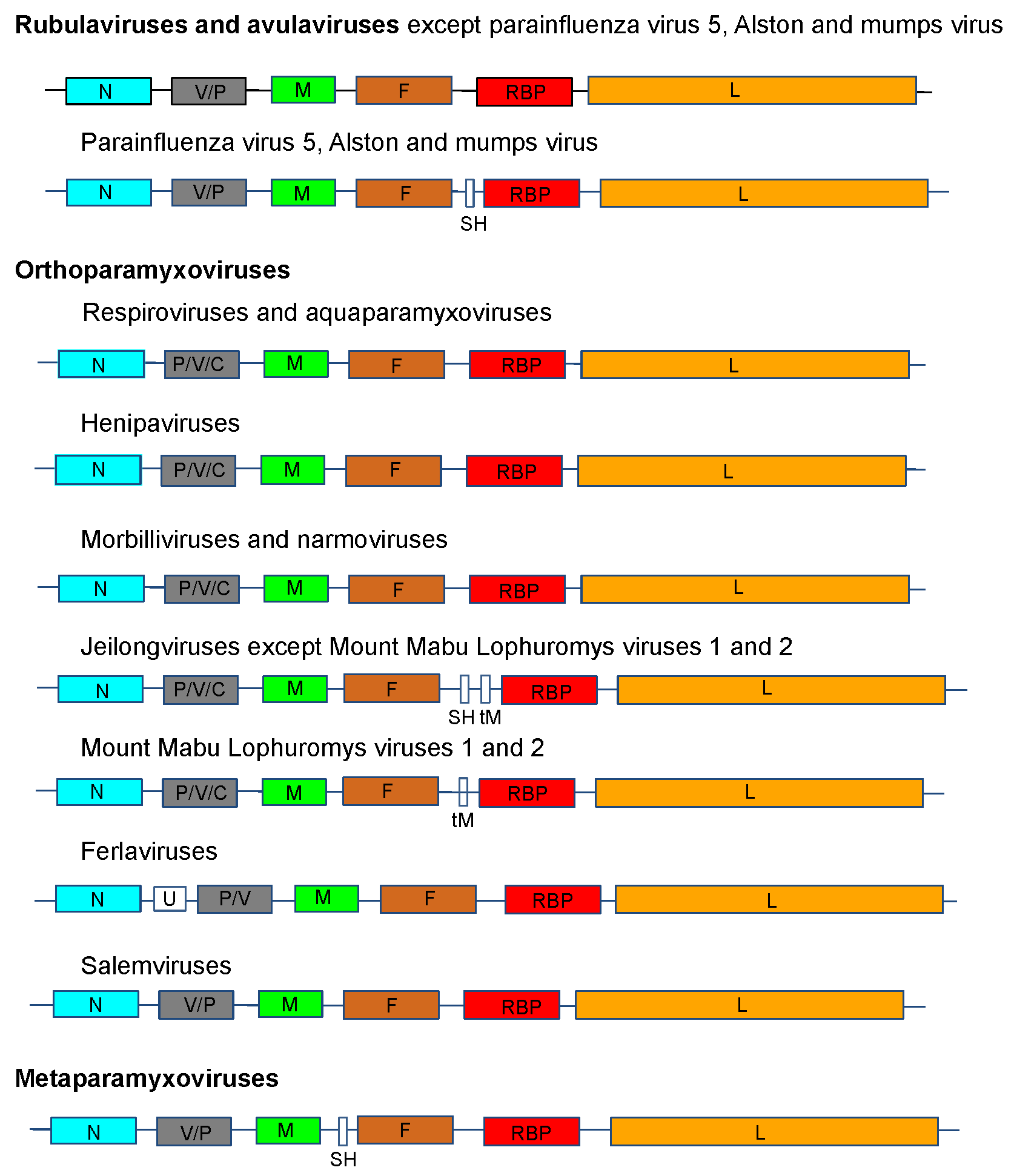 The genome organization is illustrated in Figure 2. .Paramyxoviridae for viruses representing 14 of the genera in the family.