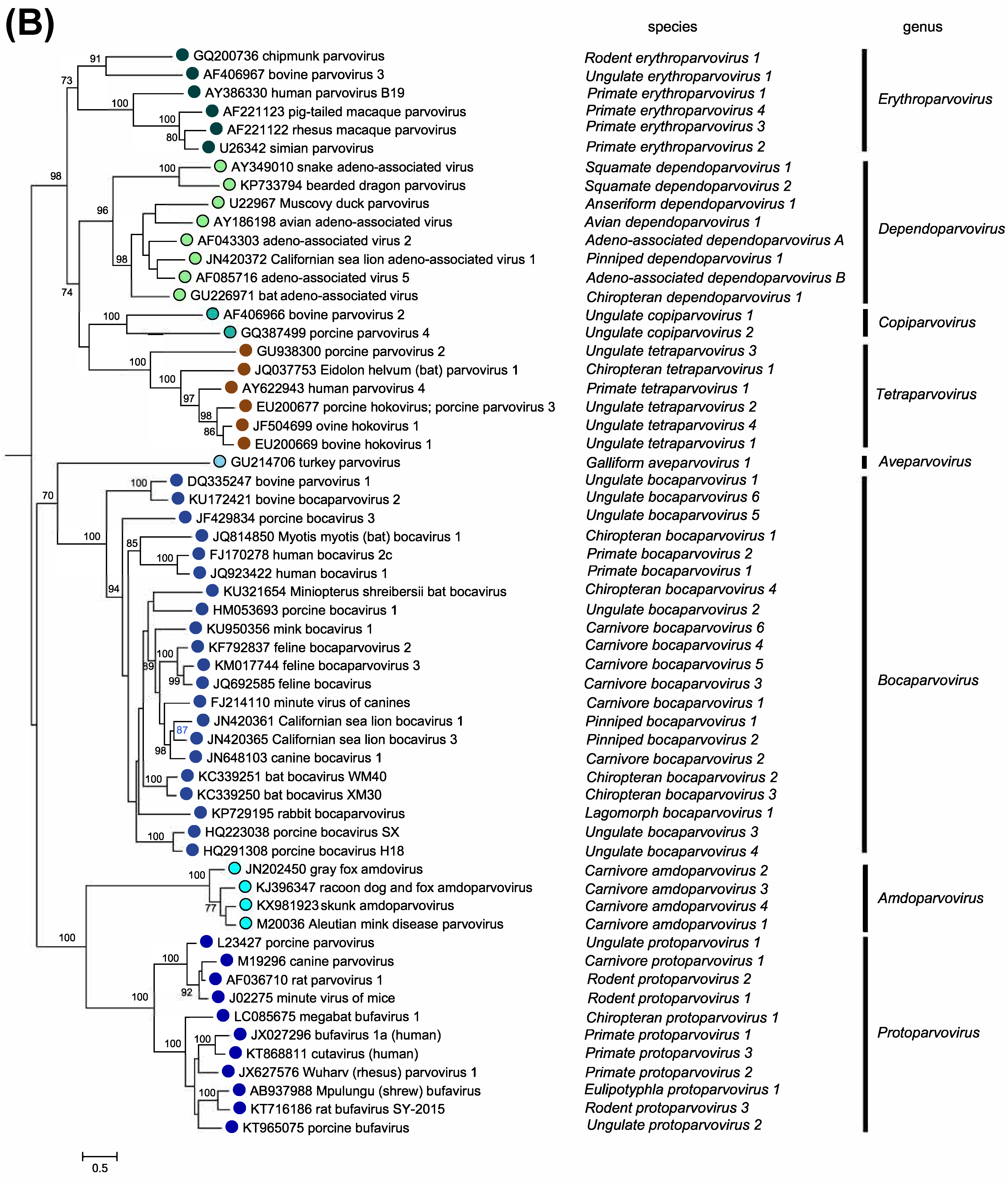 | Desmodus rotundus parvovirus | KX907333 | Dr-BatPV-1 |