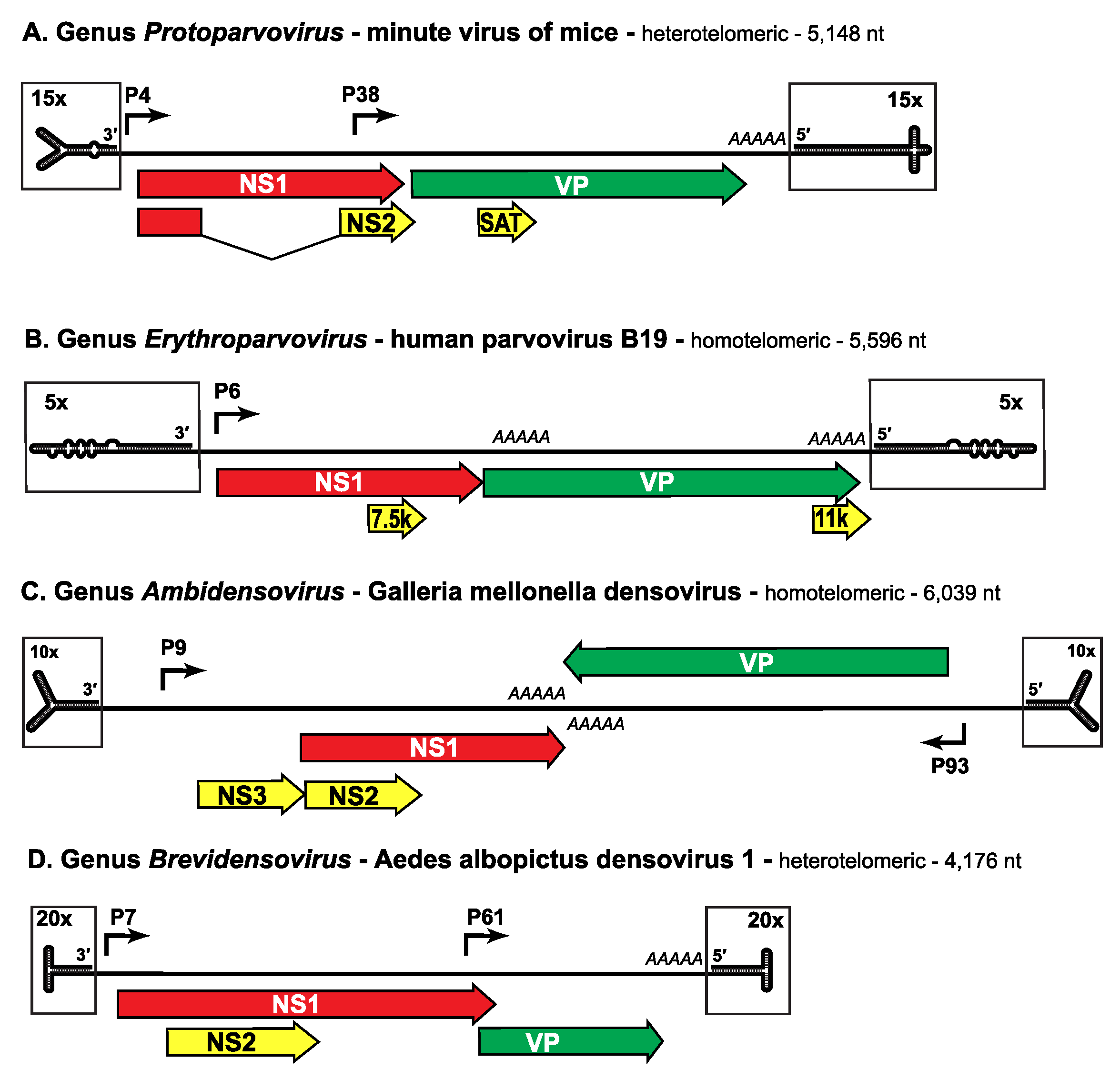 | Figure 3. Parvoviridae. Genetic strategies of representative viruses from family Parvoviridae. |